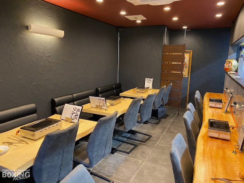 現役時代、タキザワジム所属で元A級ボクサーだった朝岡泰史氏が、昨年12月にオープンした黒毛和牛を中心とした「焼肉屋ウルフ」。美味しい肉が安心の値段で提供されている。ボクシング観戦後にボクシング談議に花を咲かせたり、ボクサーの祝勝会には持ってこいの店だ。