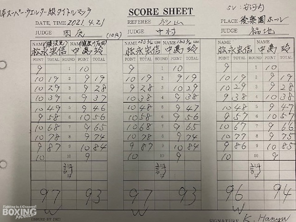初回は挑戦者の中島が、スピードを活かした攻撃で先手を奪った。初回はポイントを失ったサウスポー松永だが、慌てる素振りを見せずジャブからワンツーを決めてペースを奪い返した。前半終了時の公開採点は48-47×2、49-46×1で松永がリード。中盤以降は、頭をつけてボディを叩きお互いに譲らず。しかし、次第に松永の回転力が上回りポイントを加点。9回、中島は右ストレートで顔を弾くが松永は押し負けずパンチを返した。中差判定勝ちで松永が3度目の防衛に成功した。