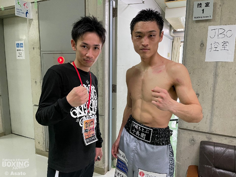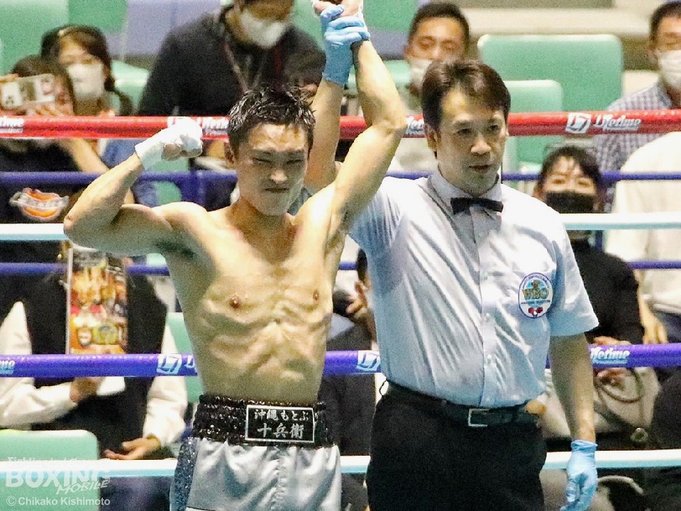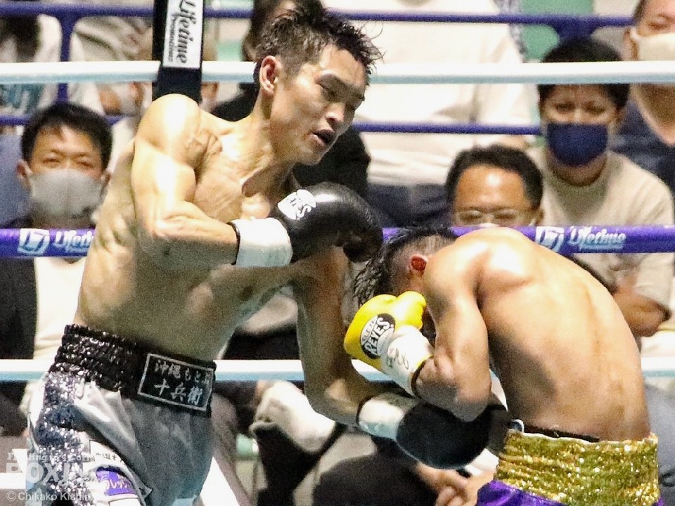 「比嘉選手は圧力が強くて、しんどい試合になった。ただ、自分が上の階級(スーパーバンタム級)で戦っていたからだと思うが、パンチ力はあまり感じなかった。疲れないので途中から前に出た」と試合を振り返った。