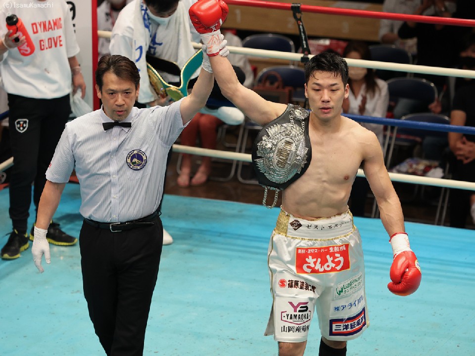 竹迫の強打が爆発した! 挑戦者の国本が距離を詰めて先制攻撃を仕掛けると、竹迫は真っ向から応戦。すると、左フックを決めてダウンを奪った。再開後、国本はボディ攻撃で反撃するが竹迫は冷静に対応すると左ボディ、左右アッパーを痛打。右ストレートから左右をまとめて2度目のダウンを演出。ここも立ち上がった国本だったが、10カウントが数え上げられた。
