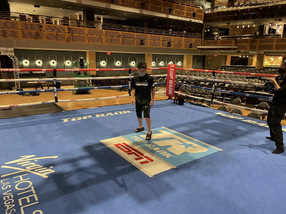 現地時間12日に、同会場でWBO(世界ボクシング機構)スーパーフェザー級暫定王座決定戦、シャクール・スティーブンソン(23=米)対ジェレミア・ナカティア(31=ナミビア)が行われるため、リングが設営された会場内を視察し、リングをチェックをするなど会場の雰囲気を感じ取った。