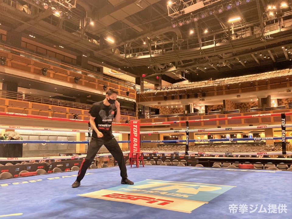 ラスベガスでデビュー戦に臨む村田昴は「今日は試合が行われるヴァージンホテルに移動して試合会場も見に行きました。試合会場を実際目にしてここで試合するんだと思うと緊張もしましたがリングに上がるとワクワクもしました。試合がとても楽しみです。そしてカメラマンさんにトランクスを履いて撮影していただき、とても良い写真を撮っていただきました。ジムワークも今日で最後で、明日は最終調整の動きの確認でシャドーと軽く身体を動かします。体調もバッチリなので試合を楽しみにしててください」と順調なコンディションを伺わせた。