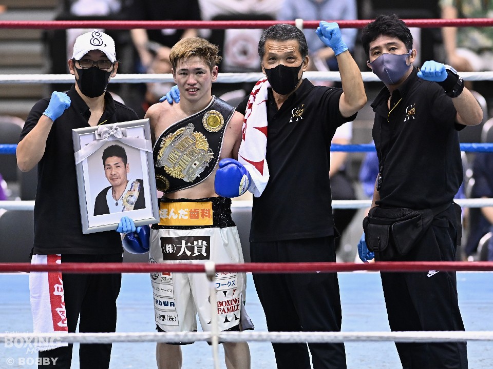 ボクシングを始めてからずっとコンビを組んできた父・洋さんが昨年の6月に急逝。明日は洋さんの1周忌だ。「これで父のお墓にベルトを持って行くことができる。本当にうれしい」と亡き父に勝利の報告をする。