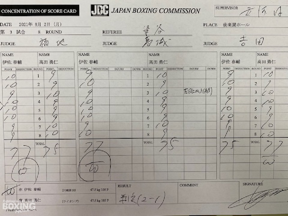 試合後に電話取材に応じた伊佐は「採点が割れた時は厳しいかなと思った。見栄えの良いパンチが打てなかったのとバランスを崩してしまったので負けたと思った。勝てて本当に嬉しい」と声を弾ませた。