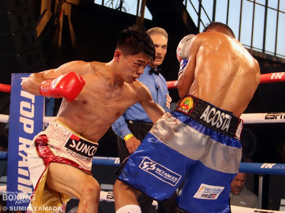 米国アリゾナ州ツーソンのAVA円形劇場で、同級1位のアンヘル・アコスタ(30=プエルトリコ)と対戦した中谷は、初回からペースを握り4回TKO勝ちで初防衛に成功した。