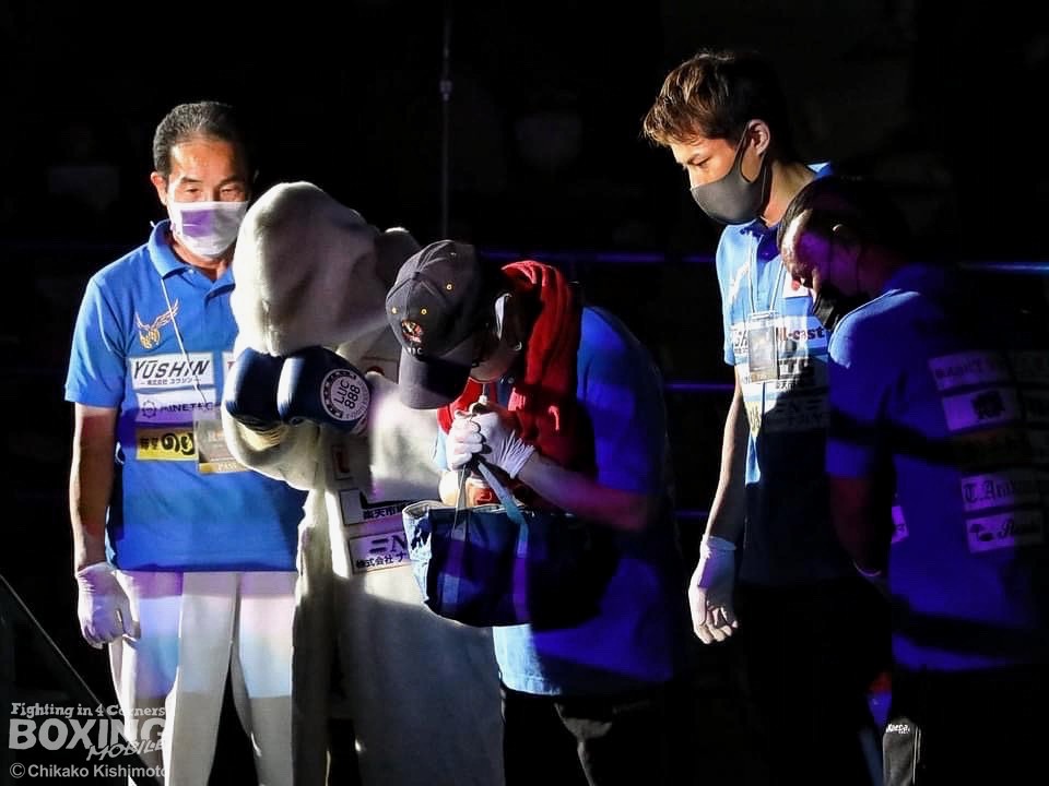 「拳四朗選手はコロナ陽性反応が出て休んだが、100%の状態で来ると思っていたので、本人も陣営も気を緩めることはまったくなかった。拳四朗選手は、8ラウンドからあれだけ前に出てくるんですから、やっぱりすごいチャンピオンだった」とあらためて前王者の強さを認めた。