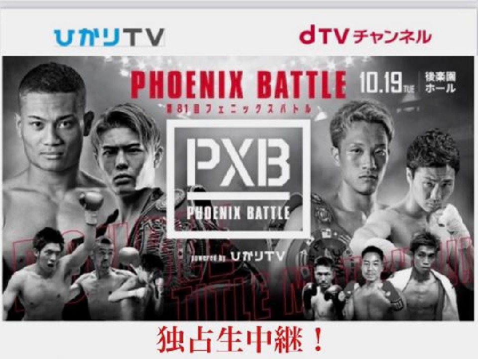 大橋ジム主催の「第81回フェニックスバトル powered byひかりTV」(10月19日(火)後楽園ホール)は、映像配信サービス「ひかりTV」(運営:NTTぷらら/アイキャスト)および映像配信サービス「dTVチャンネル」(運営:NTTドコモ)で第1試合開始(午後5時30分)から全試合を実況、解説付きで独占生中継される。放送は午後5時15分から開始される。