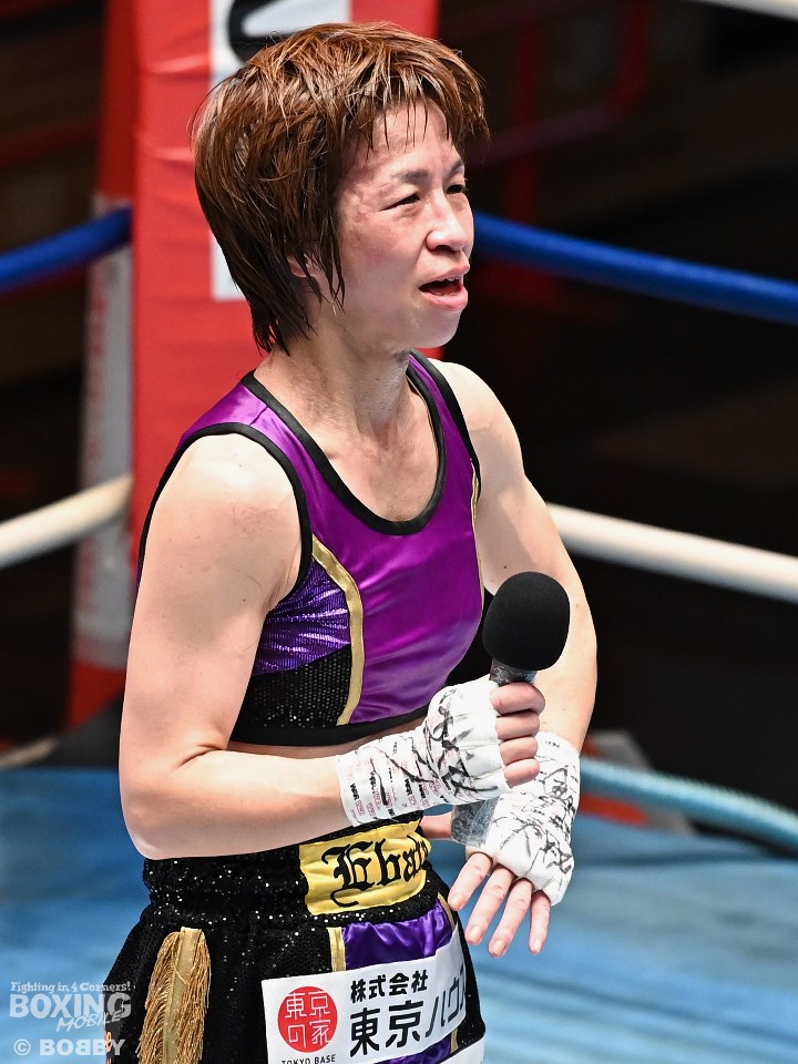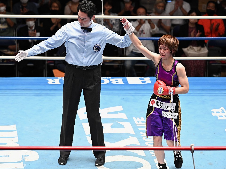 元WBO(世界ボクシング機構)女子ミニマム級王者の江畑佳代子(45=ワタナベ)が15日、後楽園ホールで開催された「Victoriva.7」のメインイベントに出場。48.3s契約6回戦で元WBO世界アトム級王者の池山直(52=フュチュール)と拳を交えた。