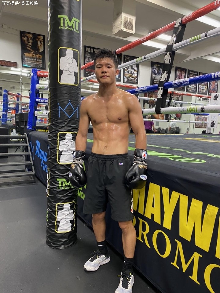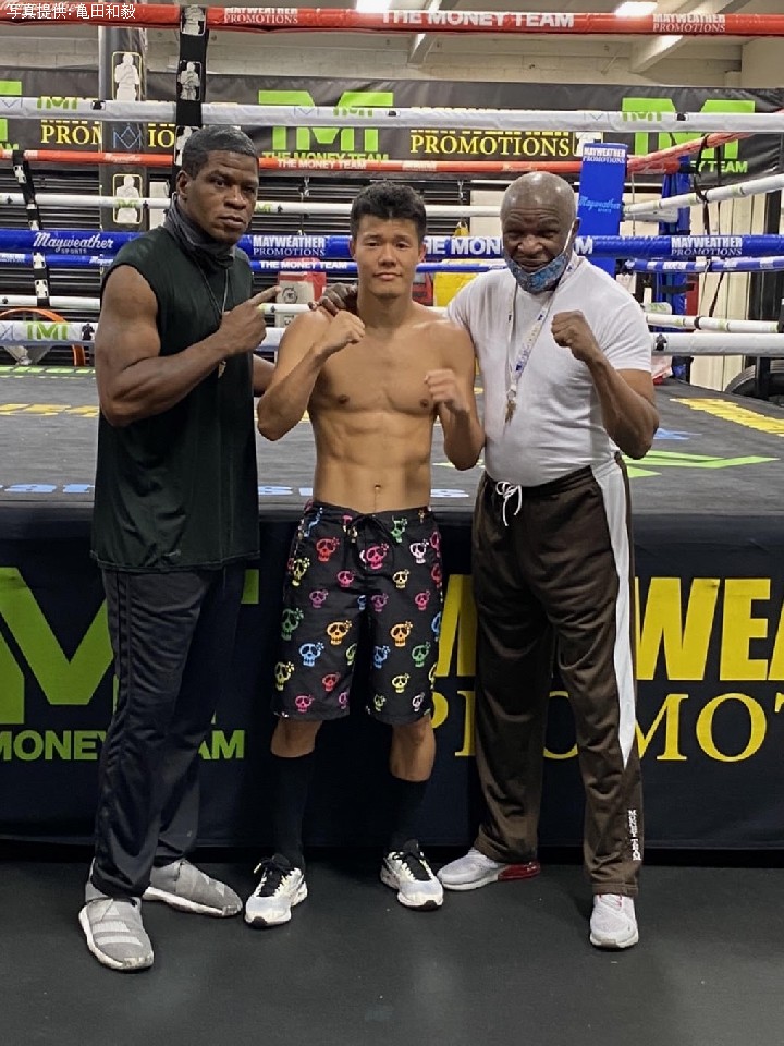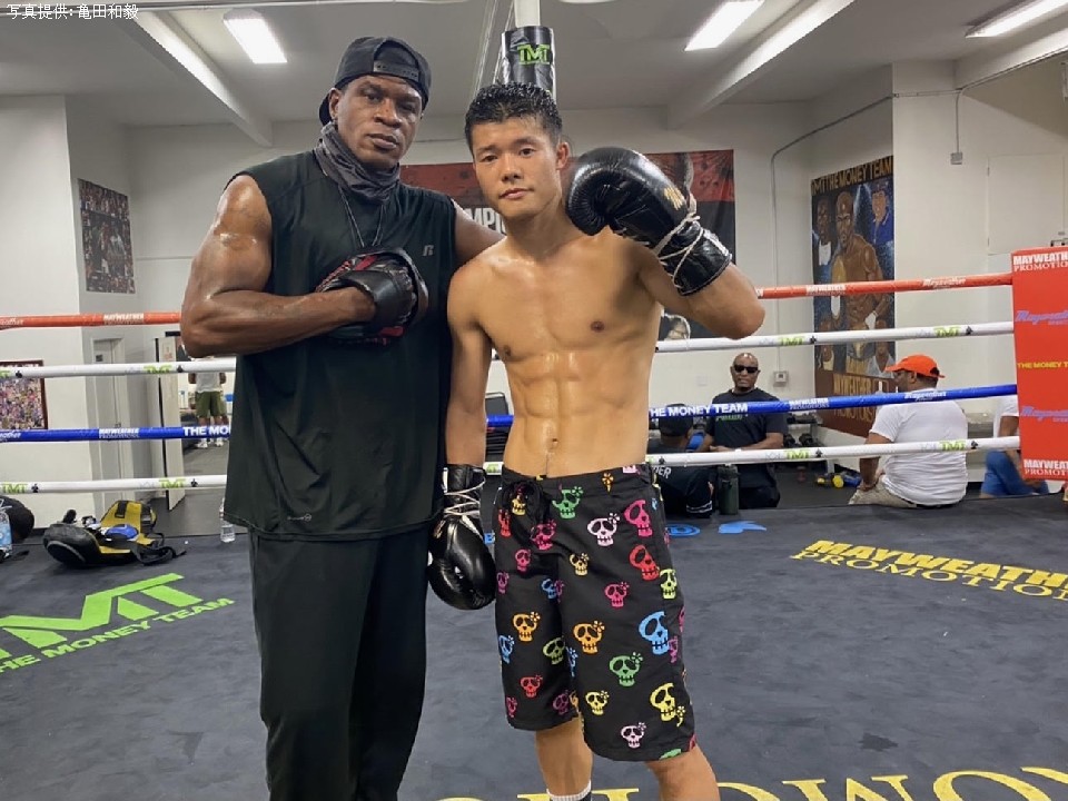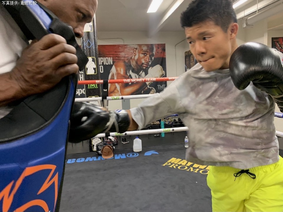 亀田 8月から米国ラスベガスに移り、現地のメイウェザージムで練習をしています。トレーナーのジェロムさんとトレーニングを積んでいます。