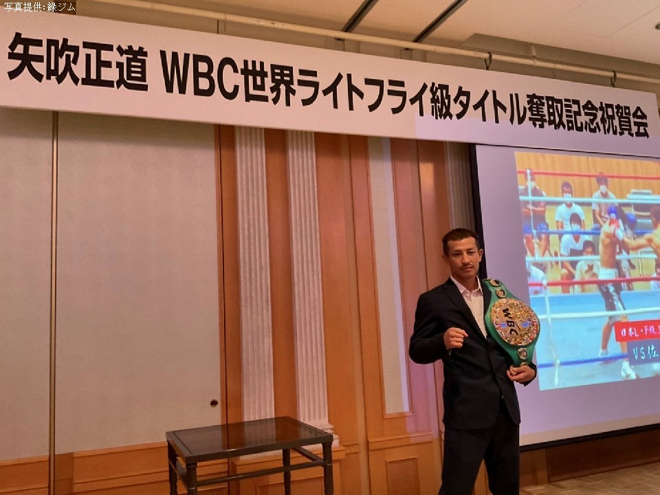 祝勝会後に電話取材に応じた矢吹は、英王手プロモーター「マッチルーム社」から話が来ていて契約を前向きに考えていることを明かした。矢吹は「来年は日本と海外を行き来しながら王座統一戦を目指したい。初防衛戦は来年の2月にできれば」と抱負を語った。