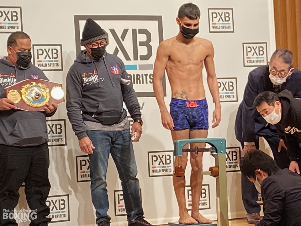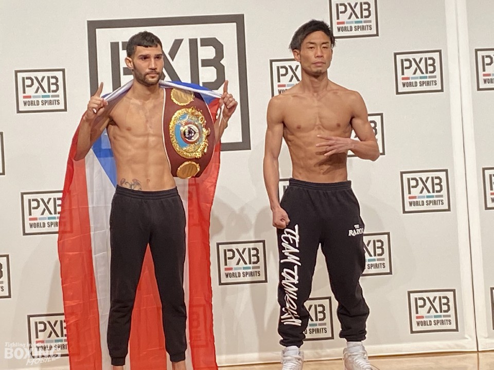 WBO世界ミニマム級タイトルマッチの前日計量が13日、横浜ベイシェラトン&タワーズの特設会場で行われ、チャンピオンのウィルフレッド・メンデス(25=プエルトリコ)と谷口将隆(27=ワタナベ)が初顔合わせした。