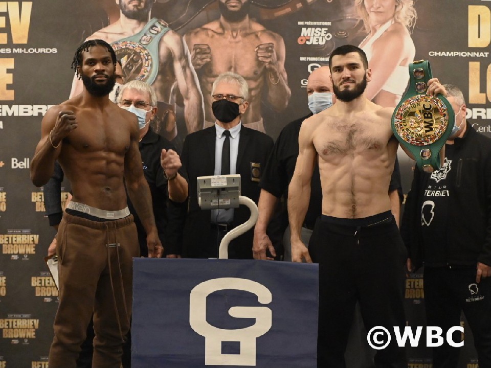 一方、挑戦者でWBC1位・IBF6位のマーカス・ブラウン(31=米国)は、174.6lb(79.19kg)と約200グラムアンダーで難なくクリア。