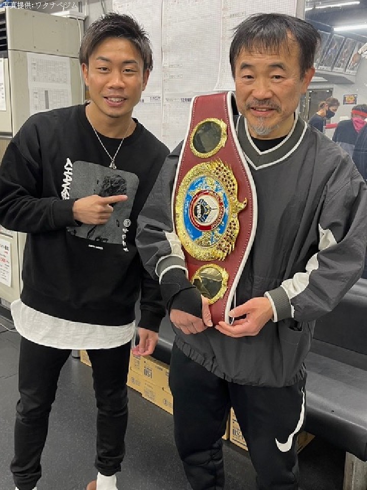 今回、WBO王者となった谷口だが、かつてWBOアジアパシフィック王者にも就いている。「世界のベルトは真ん中のロゴがリングだが、WBOアジアは(真ん中のロゴが)グローブになっている」とデザインの違いを説明した。