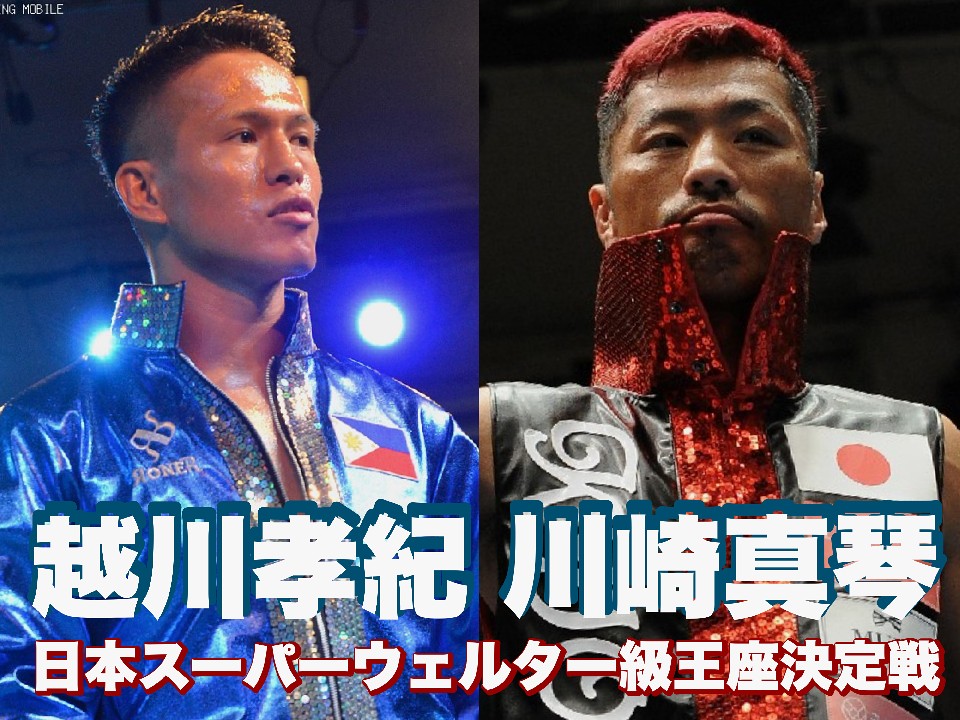 メインイベントでは、日本スーパーウェルター級王座決定戦、同級1位の越川孝紀(31=一力)対同級2位の川崎真琴(37=RK蒲田)が行われる。