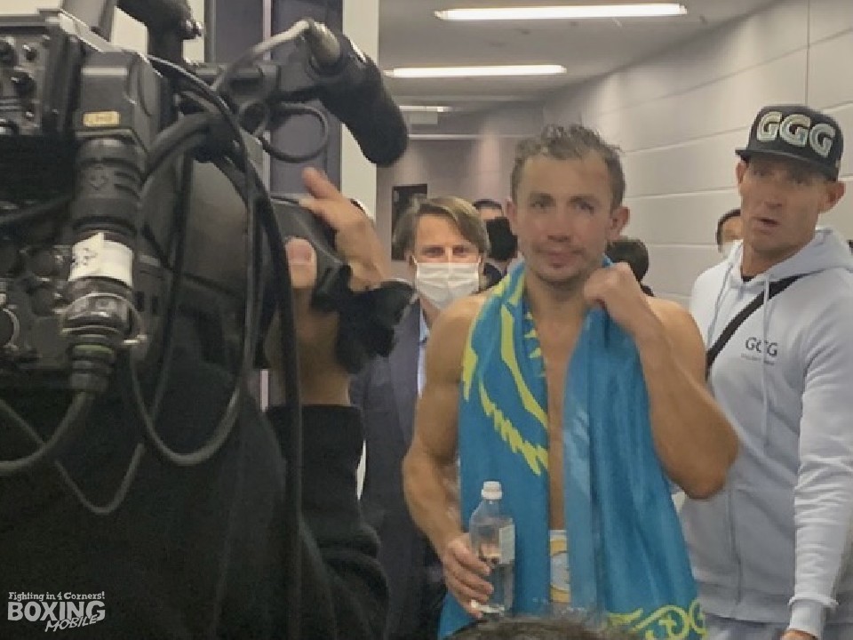 リング上の勝利者インタビューでゴロフキンは「まず、こういった素晴らしい舞台を用意してくださり、また多くのファンが見に来てくださり、感謝申し上げます。また、チームに感謝し、村田選手並びにそのチームに感謝します。村田はオリンピックチャンピオンというだけでなく、スーパー王者である素晴らしい選手です。そんな彼と戦えたことを誇りに思います。最後に、今日会場に来てくれているカザフスタン人のファンの方にありがとうと言いたいです。ありがとう!」と、大きく手を振って会場のファンに感謝を伝えた。