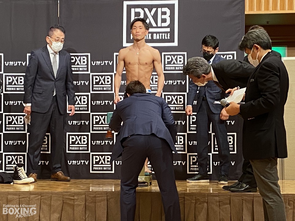 WBO(世界ボクシング機構)ミニマム級タイトルマッチの前日計量と記者会見が21日、横浜市内のホテルで行われ、初防衛戦のリングに上がるチャンピオンの谷口将隆(28=ワタナベ)と、この日WBOより発表された最新ランキングで、2位に上がった石澤開(25=M・T)が計量に臨んだ。谷口は47.6sで一発クリア。一方、石澤は2.5kgオーバーの50.1sだったため、2時間後に再計量する。