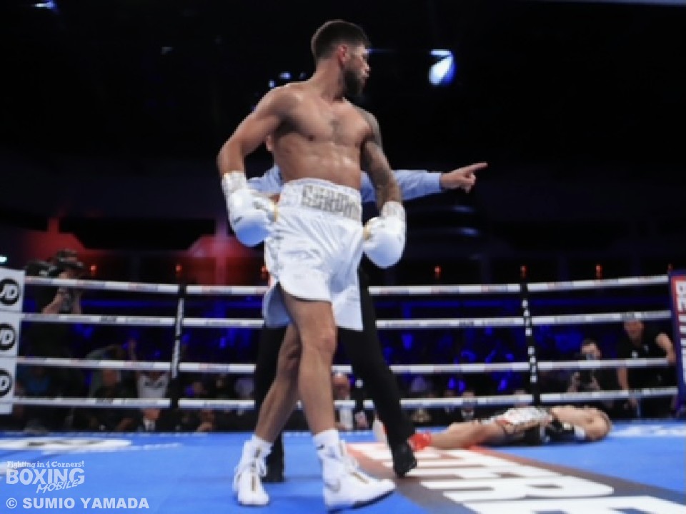 試合は一瞬の判断の差で決まった。ジャブからの組み立てを続けていたコルディナが2回、真正面に立った尾川に対して、下へのフェイントを掛けるとノーモーションでジャブを挟まず、鋭く踏み込んで右ストレートをアゴに打ち抜いた。