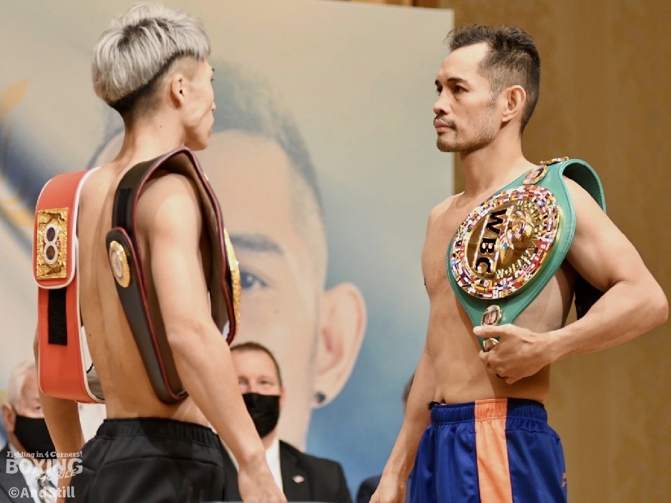 バンタム級3団体王座統一戦の前日計量が6日、横浜市内のホテルで行われ、WBA(世界ボクシング協会)バンタム級スーパー・IBF(国際ボクシング連盟)同級王者の井上尚弥(29=大橋)とWBC(世界ボクシング評議会)同級王者のノニト・ドネア(39=比/米)の両者が計量に臨んだ。井上は、バンタム級リミットちょうどの53.5kg、ドネアは100gアンダーの53.4kgでクリアした。2019年11月7日のWBSS(ワールド・ボクシング・スーパー・シリーズ)決勝戦以来、約2年7ヶ月ぶりに対戦する二人が、15秒のフェイスオフで気持ちを確かめ合った。