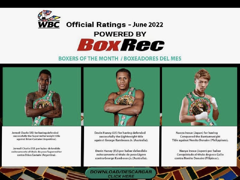 WBC(世界ボクシング評議会)が11日、6月の世界ランキングを発表、3名の世界チャンピオンを「BOXERS OF THE MONTH」(月間最優秀選手)に選出した。