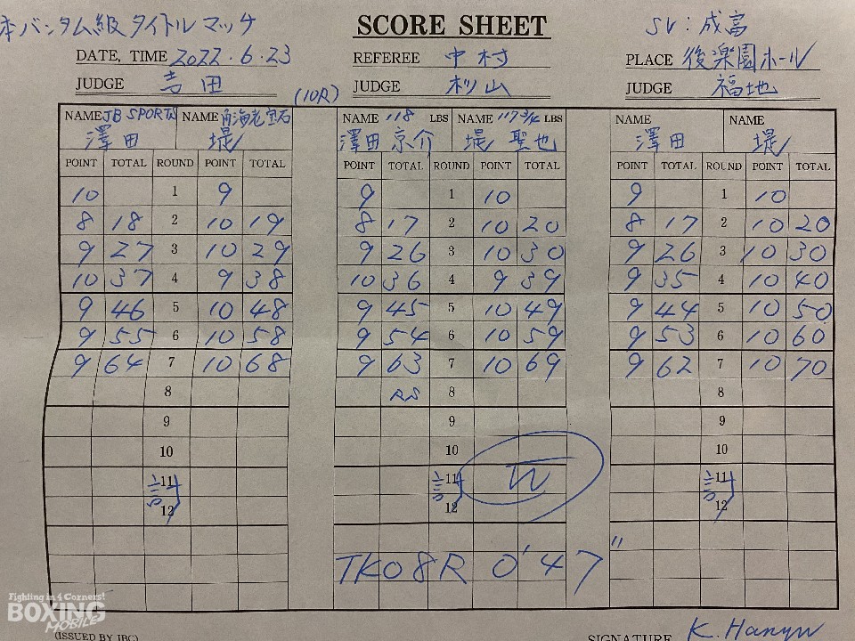 今年2月、長らく王座不在だった日本バンタム級王座に就いた澤田が、初防衛に成功したのか? それとも待ち続けた挑戦者・堤がベルトを奪ったのか? 注目の一戦の結末はーー。