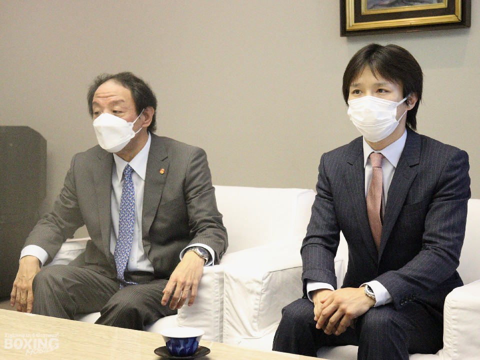 山本区長は「ボクシングは、プロもアマチュアも盛り上がっている。ぜひ防衛して次の段階に進んでほしい。墨田区としても応援している」とエールを送った。