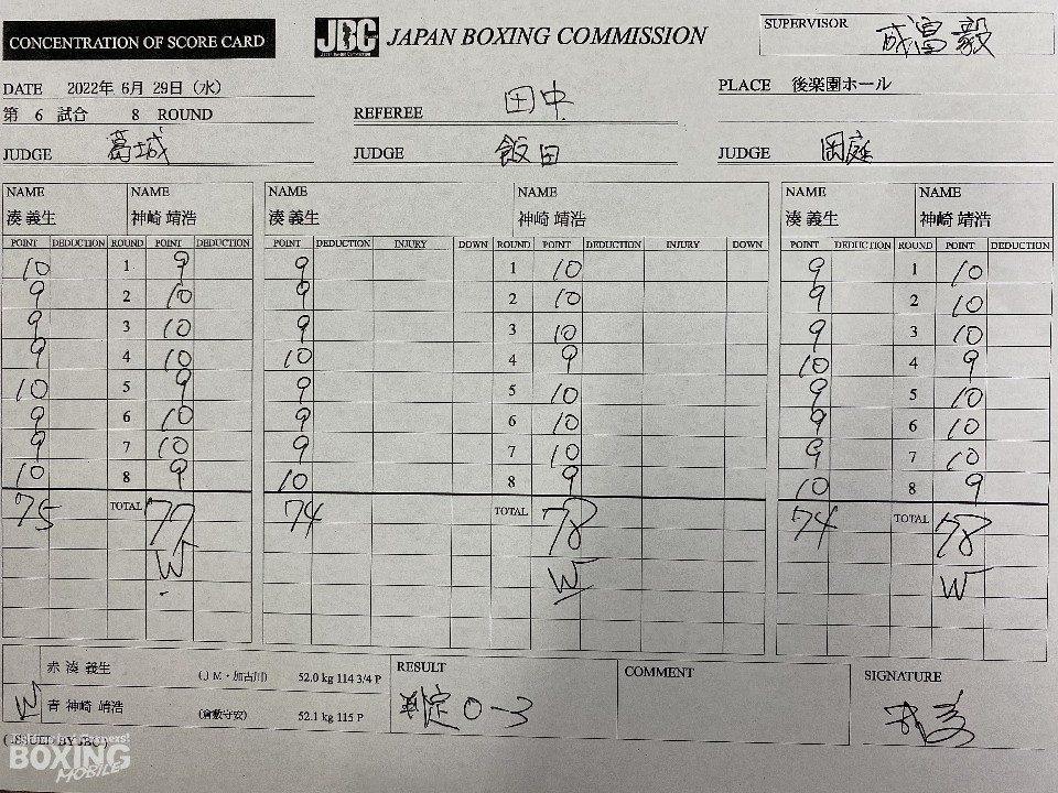 グイグイと距離を潰してくる湊に対し、神崎はジャブから右ストレートを好打。力強いパンチをブロックすると、ジャブを軸にポイントを重ねた。最終8回は、両者とも意地を見せて打ち合った。有効打で上回った神埼が第4代日本ユース・スーパーフライ級王者に輝いた。