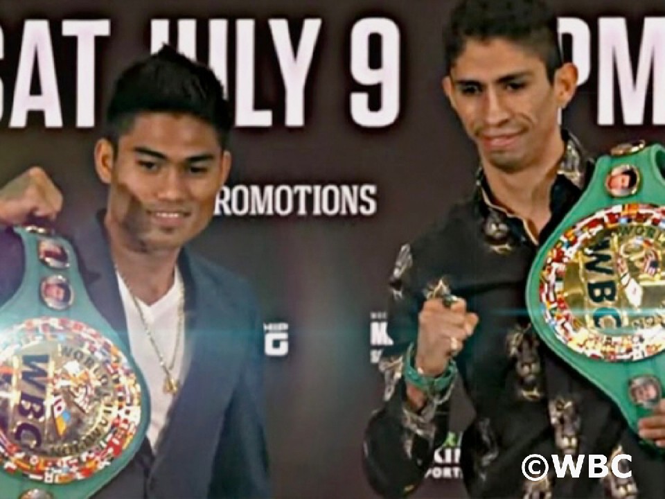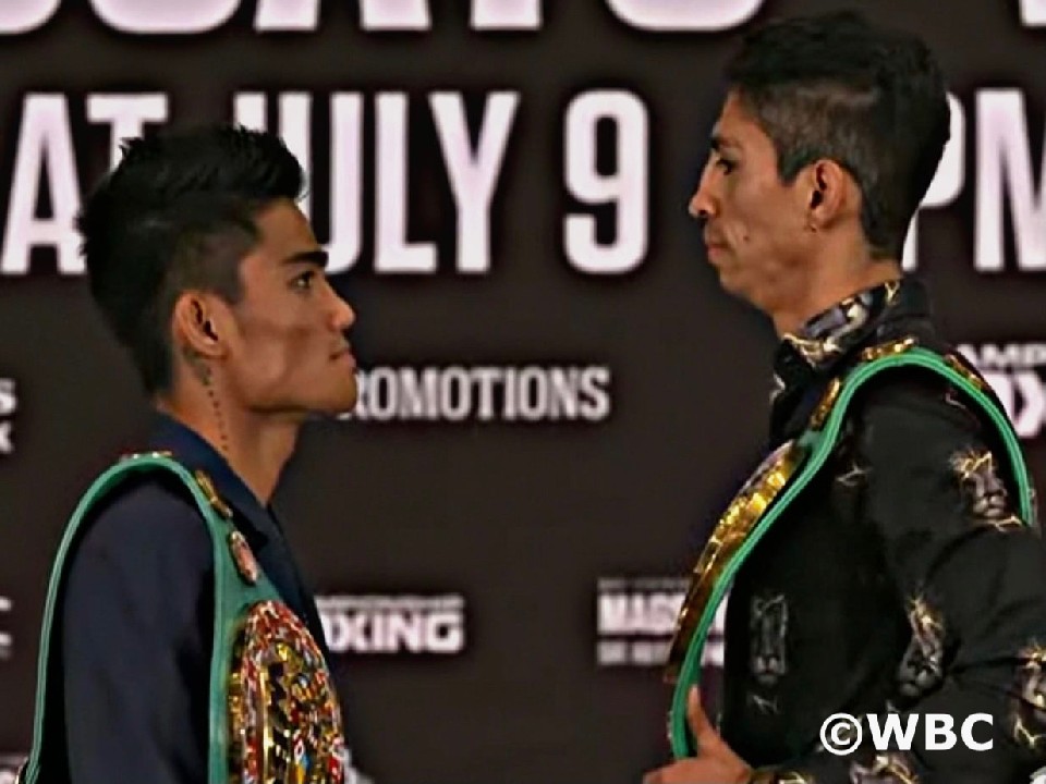WBC世界フェザー級タイトルマッチで対戦するチャンピオンのマーク・マグサヨ(27=比)とランキング1位で、35戦35勝(22KO)の戦績を誇る挑戦者、元WBC世界スーパーバンタム級王者のレイ・バルガス(31=メキシコ)が7日、共同会見で「Face to Face」した。