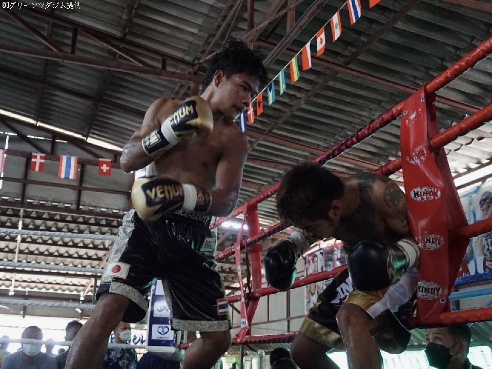 9月10日に前WBCチャンピオンの矢吹正道(緑)と対戦する、タノンサックは「今日の試合でKOで勝つことができて嬉しいです。次は、いよいよ矢吹選手との試合です。日本で試合出来ることが一番嬉しいです。もちろんKOで勝ちます。応援宜しくお願いします!」とコメントを寄せた。