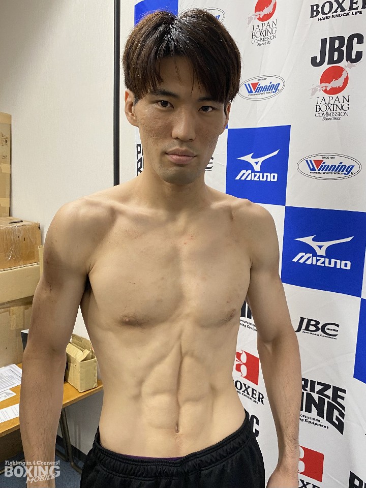 8ヶ月ぶりの試合となる豊嶋は、ウェルター級リミットを300g下回る66.3sでクリア。年明けから食事面での見直しを図ったという豊嶋は、「最後は、半身浴をせずにしっかりと体重を落とすことができた。明日は良いパフォーマンスが見せられそうです」と仕上がりの良さを感じさせた。