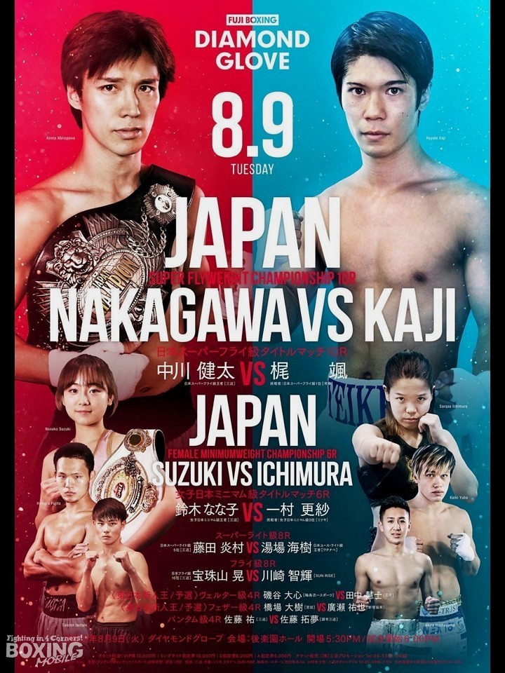 試合は、明日(9日)に後楽園ホールで開催される「ダイヤモンドグローブ」で行われ、「FOD」(フジテレビ・オン・デマンド)で全試合ライブ配信される。
