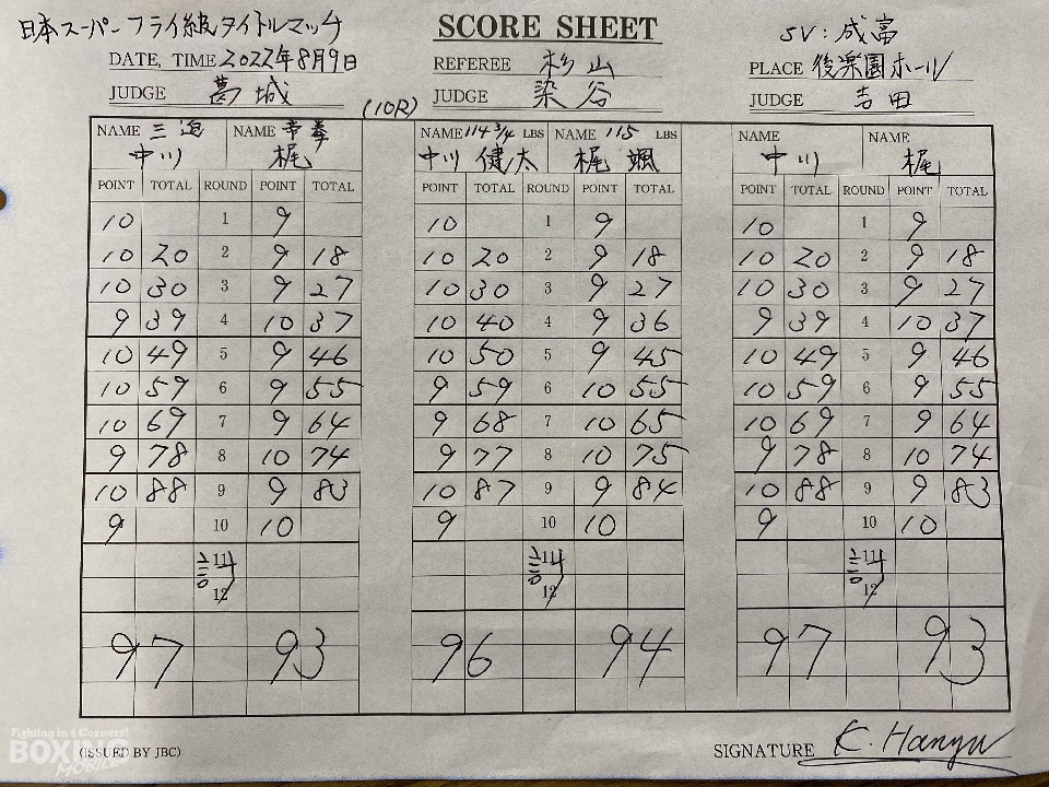 日本スーパーフライ級タイトルマッチ、王者の中川健太(37=三迫)対同級1位の梶颯(24=帝拳)の一戦が9日、後楽園ホールで開催された「ダイヤモンドグローブ」で行われた。