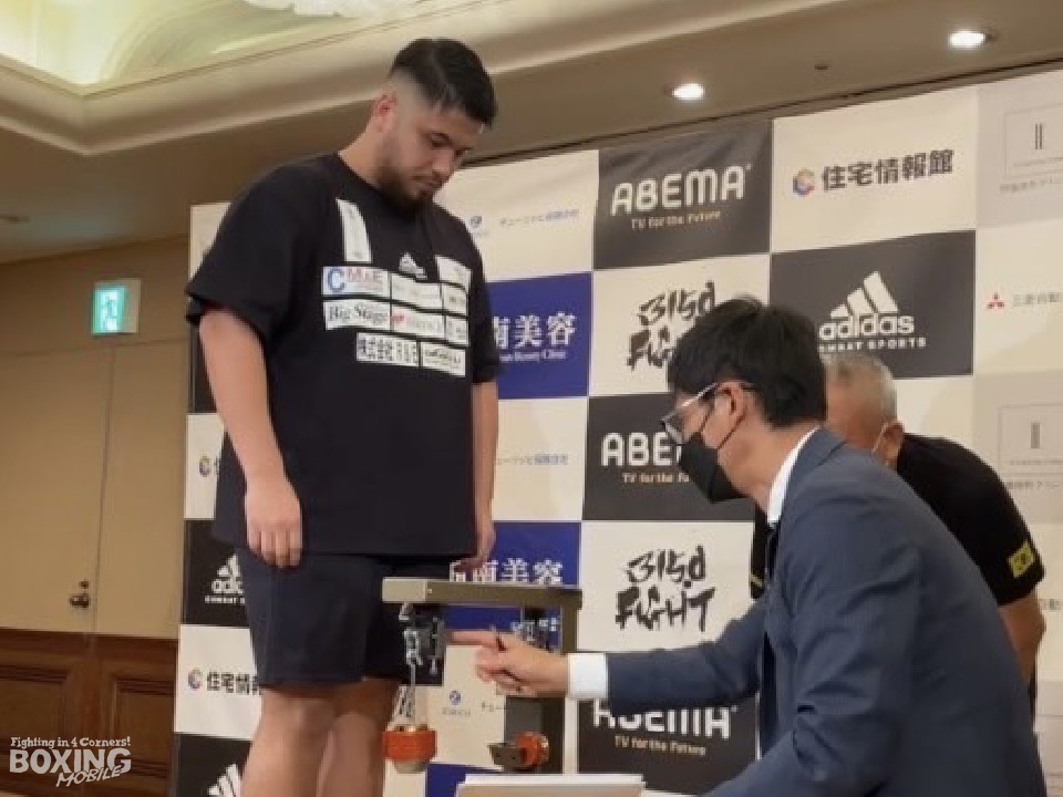 日本ヘビー級王座決定戦の前日計量が13日、大阪市内のホテルで行われ、同級1位の但馬ミツロ(27=KWORLD3)と韓国同級王者のイ・ソンミン(31=韓国)が会場に姿を現した。但馬は120.0s、イは111.5sでクリアした。