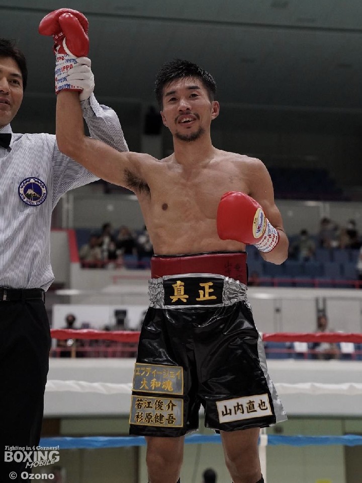 復帰2戦目で世界ランキング入りを濃厚とした山中は「ポイントはイーブンだと思ったので、8ラウンドは倒しに行った」と急なラウンド数変更に対応したことを明かした。