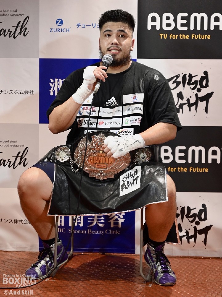 デビュー戦に続き、初回KO勝ちでベルトを巻いた但馬は「パンチ力を確認して、攻めていく作戦だった。イメージしていたよりパンチは重たかったが、自分のガードを崩すほどではなかった」と話すと、「ジャブに手応えを感じた。感触があったので、このままレフェリーストップに持ち込もうと思った」と会心の勝利に胸を張った。