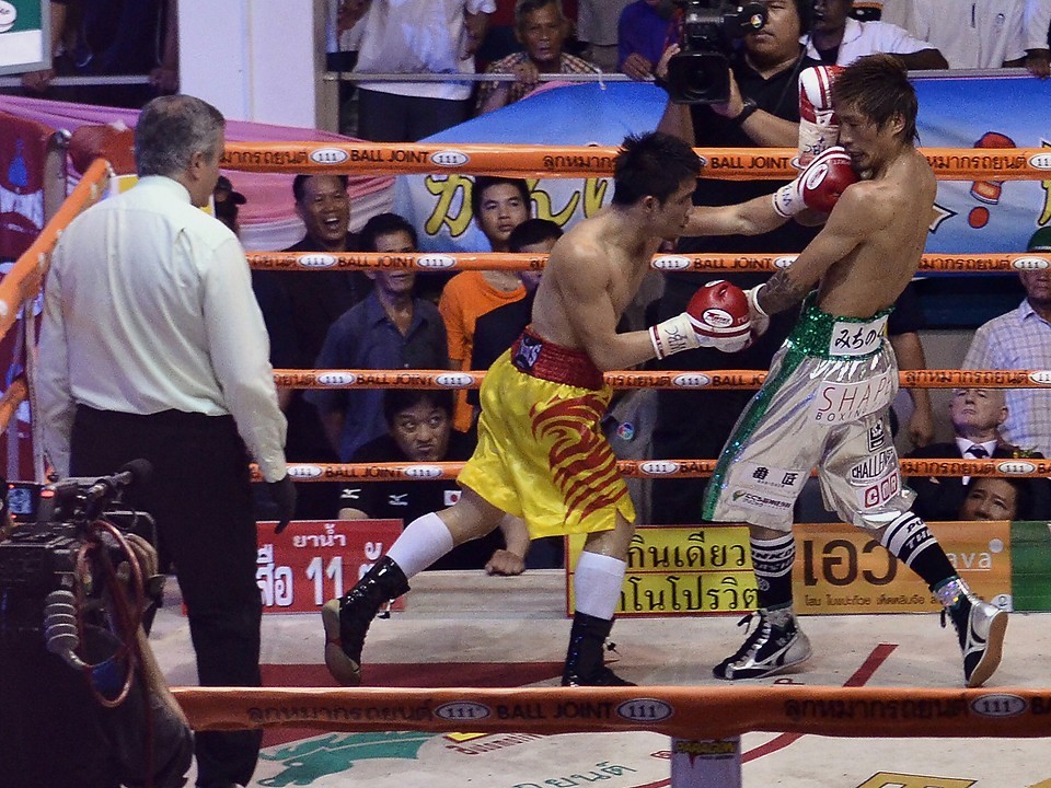 タイで世界戦を戦った最初の日本人ボクサーは、ファイティング原田氏。1963年1月12日のフライ級世界戦だ。チャンピオンとしてリングに上がった原田氏だったが、ポーン・キングピッチ氏に敗れ、日本で勝ち取った世界チャンピオンのベルトを奪い返されてしまった。