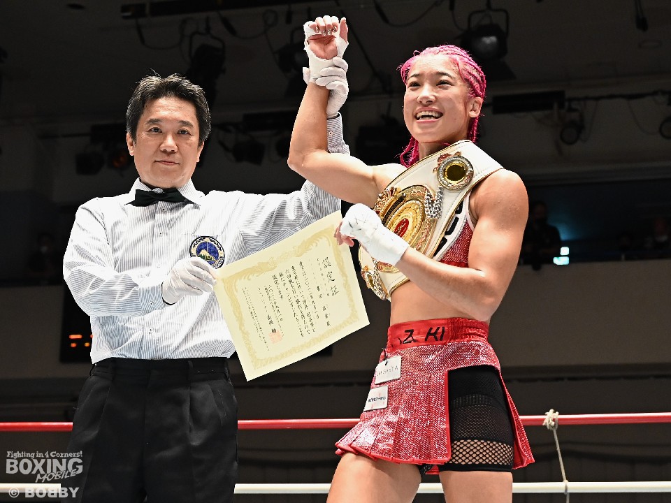 日本女子フライ級王座決定戦、同級1位の晝田瑞希(26=三迫)対同級3位の柳井妃奈実(24=真正)が1日、後楽園ホールで開催された「QueensCrest2022」で行われた。