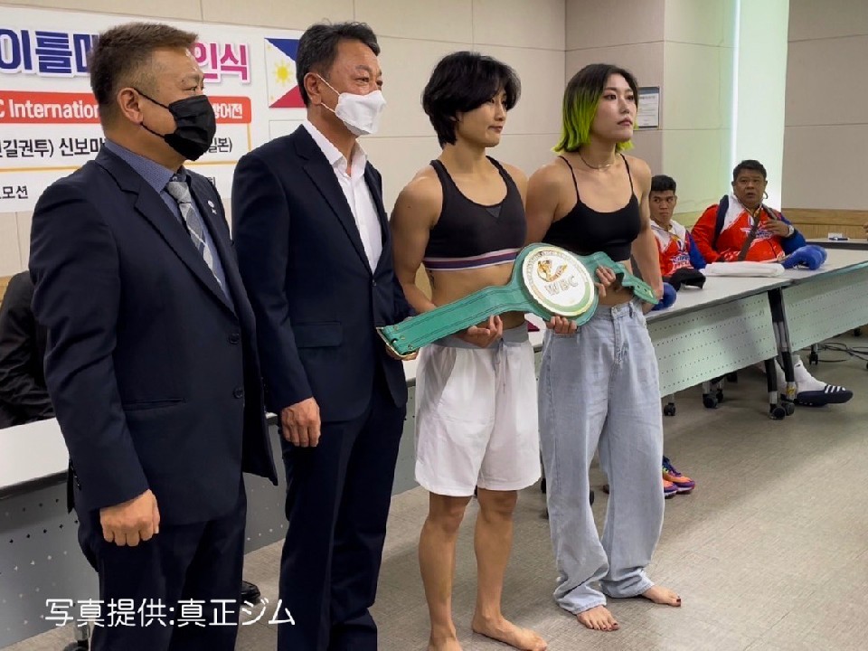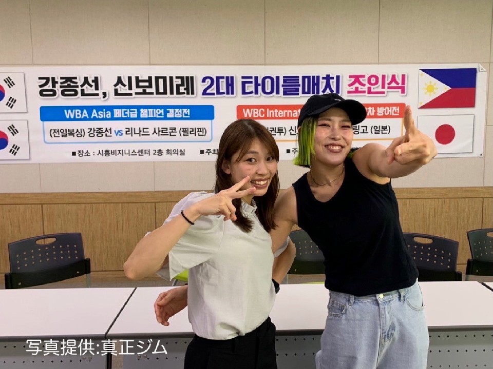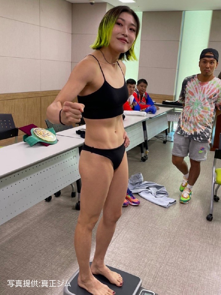 WBCインターナショナル女子スーパーフェザー級タイトルマッチの前日計量が3日、韓国ソウルで行われ、王者のシン・ボミリ(28=韓国)と挑戦者でWBOアジアパシフィック女子バンタム級王者の赤林檎(27=真正)が計量に臨んだ。