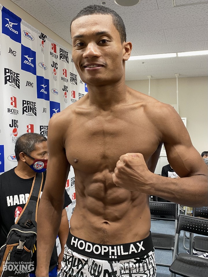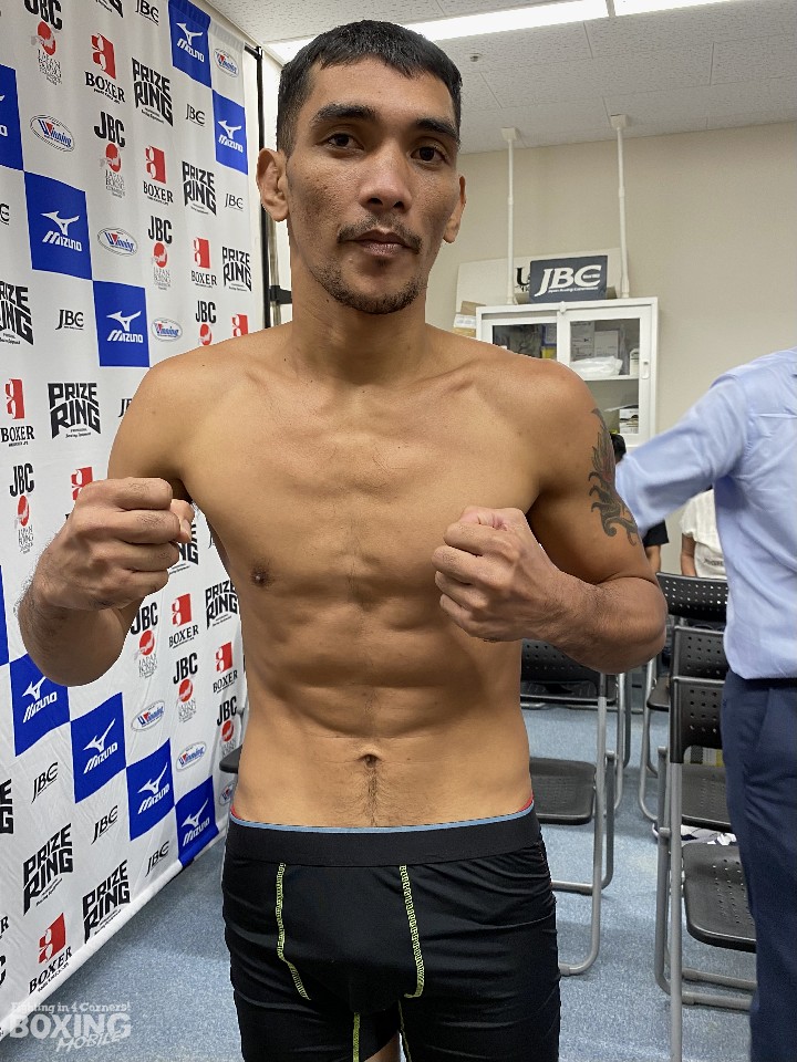 一方、階級を下げてWBOアジアパシフィック2階級制覇を目指すラガンベイは、200gアンダーの63.3sでパスした。「相手は強いが勝つ。明日はベルトを奪う」と王座奪取を誓った。