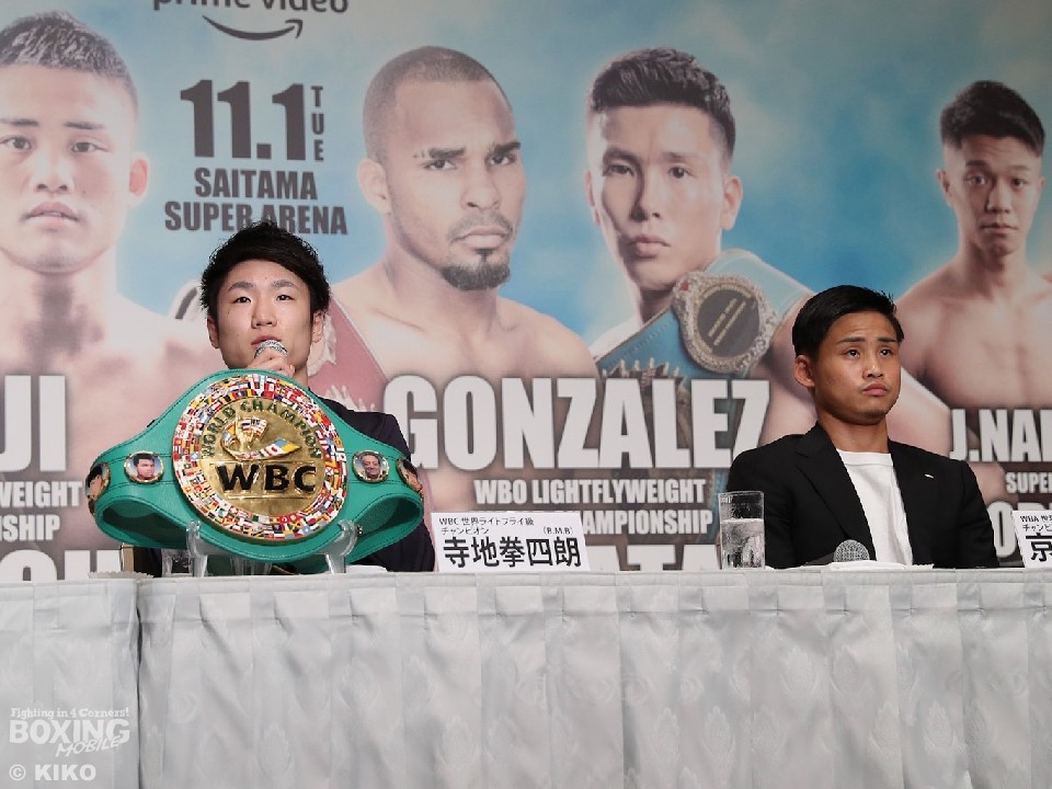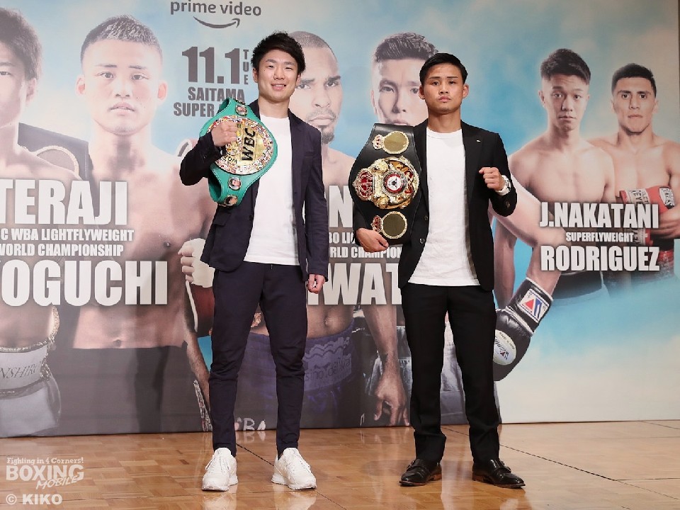 WBA世界スーパーチャンピオンの京口紘人(28=ワタナベ)とWBC世界チャンピオンの寺地拳四朗(30=BMB)が14日、都内のホテルで開かれた共同会見で、ライトフライ級 の2団体王座統一戦を11月1日(火)に行うことを発表した。