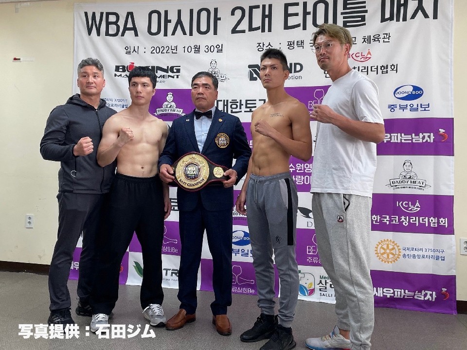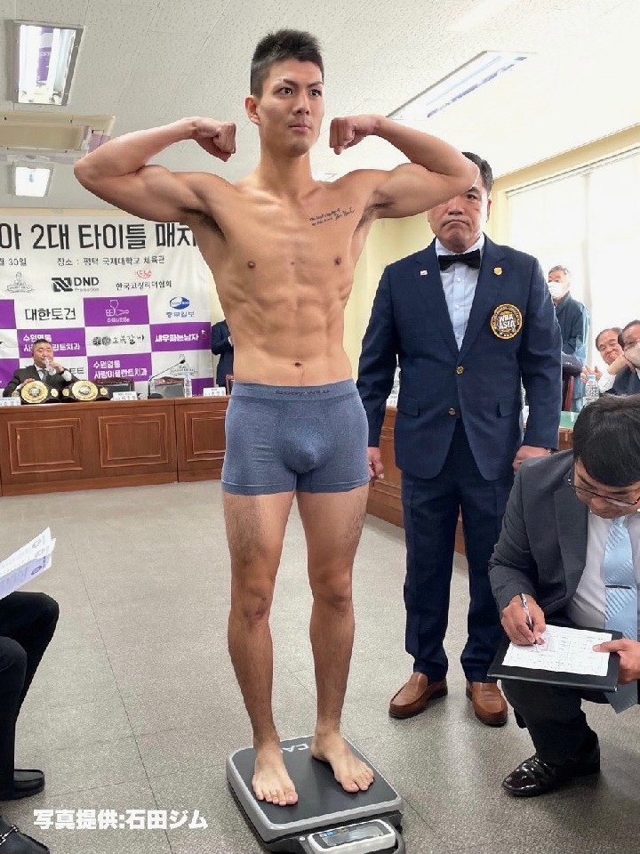 WBAアジア・サウス・ウェルター級王座決定戦の前日計量が29日、韓国ソウルで行われ、日本ウェルター級3位の石脇麻生(23=石田)とリ・ポムキュ(韓国)が計量に臨んだ。両者とも、ウェルター級リミットを100g下回る66.5sでクリアした。