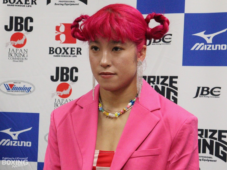 一方、トップアマチュアからプロに転向した晝田は、高い技術を武器に、今年9月、日本王座を獲得。4戦目で世界に挑む。「思っていたよりも早くチャンスが来た。でも、いつ来てもいいように準備はしていた」と話すと、「アマチュアでは、たくさん負けて悔しい思いをしてきたので、プロで負けるつもりはない。ピンクのベルト(WBOベルト)は私のためにあるベルト。必ず獲ります」と王座獲得に自信を示した。
