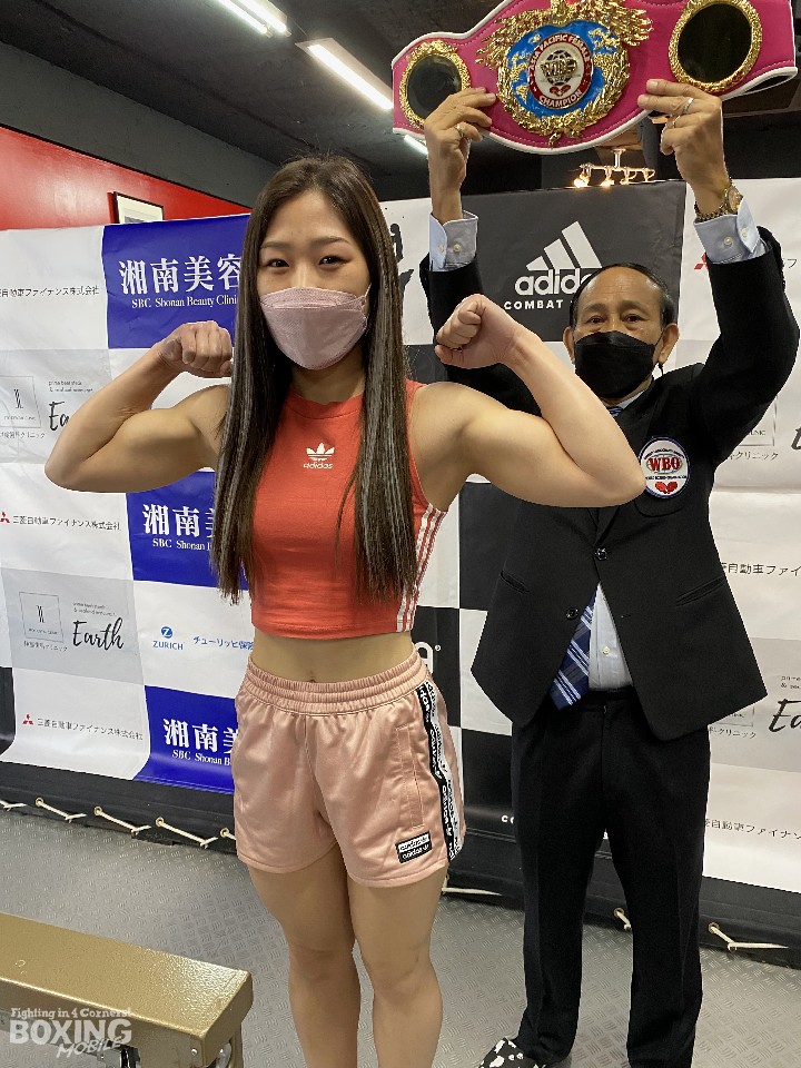 「緊張しているが、ワクワクしている。ディフェンスを意識しながらも、自分から仕掛けて必ず勝つ」とベルト奪取を誓った。ピンクのベルトを間近で見て「格好いいですね」と、さらにモチベーションを高めていた吉川。ジム初のチャンピオンになるべく決戦の舞台に立つ。