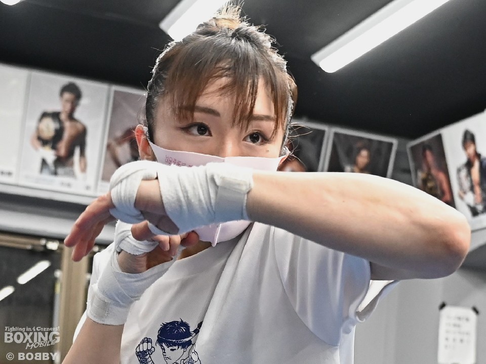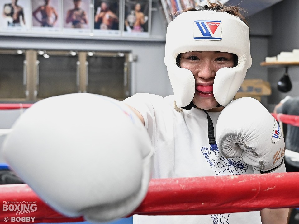 リングに上がるからには、「倒して勝ちたいですね」という谷山。女子の試合は1ラウンド2分で行われるが、「3分の方がいいという声も聞きますが、2分でも大丈夫ですね」とイメージは出来ている。