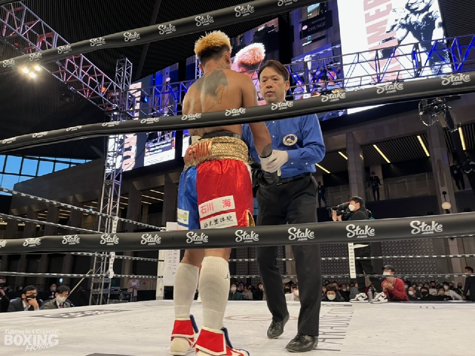元3階級制覇王者のカシメロと拳を交えた赤穂は「1ラウンドは想定内。踏み込みのスピードもパンチ力も想定内でした。当てにくさや遠いと感じることも全くなかった。ボディに手応えあった。カシメロは打ちにきてたんで、左フックが上手く入った。パンチがある感じではなかったけど、パンチもあったんだと思います」と2ラウンドの攻防を振り返った。ラビットパンチを受けたため、2ラウンドの記憶は、定かではないとしながらも「アピールしてたら、打ってきそうだったんで」と、カシメロのラフファイトにも冷静さを保つことはできた。