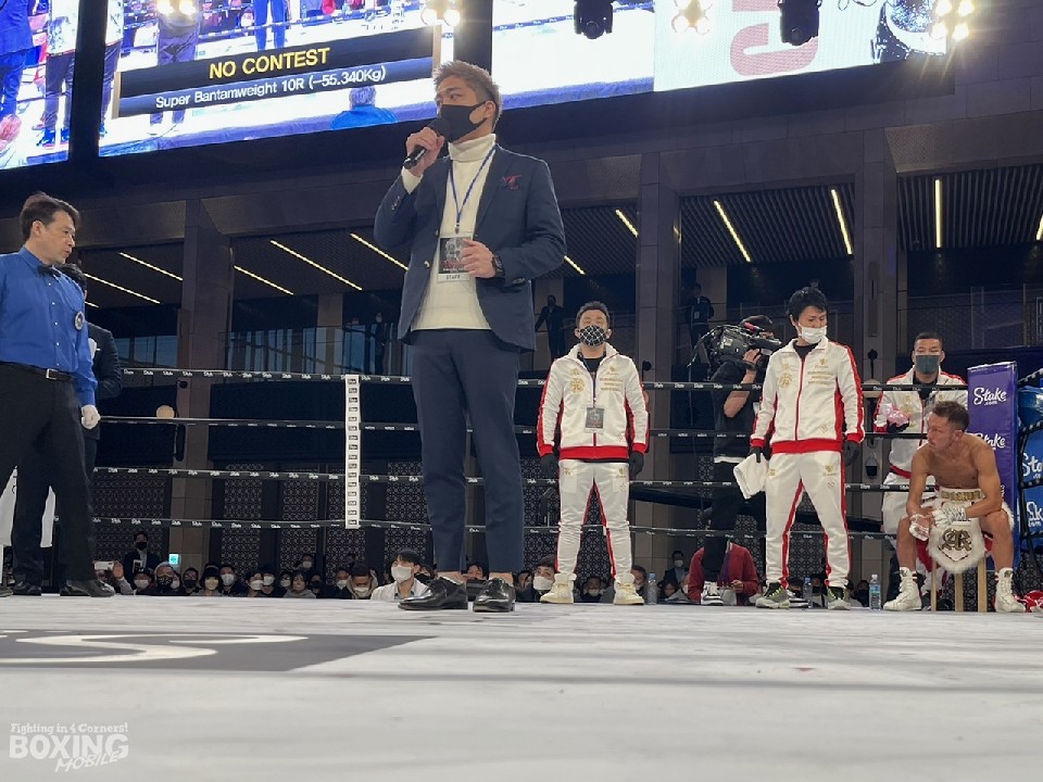 「KBMルールによってのノーコンテストですね。今回の興行はJBCも入っていただいて、KBMとJBCの両方で統括してもらいました。どちらも1番最後の(後頭部パンチ)シーンではなく、試合をさかのぼって見返し、何回も後頭部へのパンチが入っていた、との判断だそうです。ただ観ている人には分からない部分もあると思う。赤穂は立ち上がれなかったわけで。ノーコンテストというのはスポーツとしては、そうなのだろうとは思うけれど…という気持ちです」