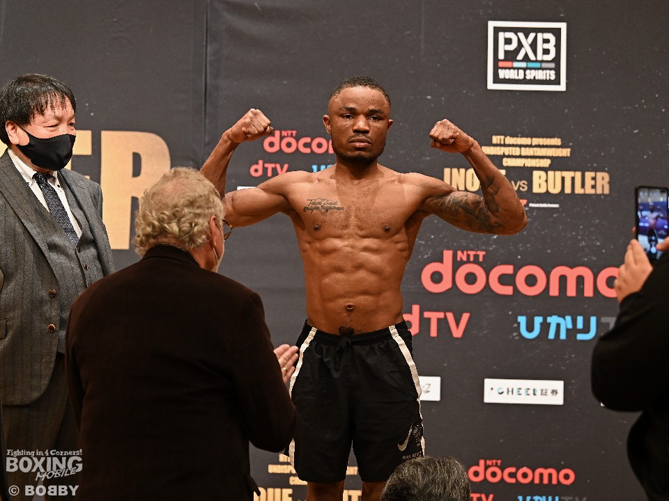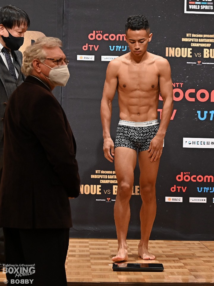 挑戦者のタリモは、300gアンダーの55.0sで計量を終えた。身長は武居より低かったが、上半身がガッチリとしており、仕上がりの良さを感じさせた。