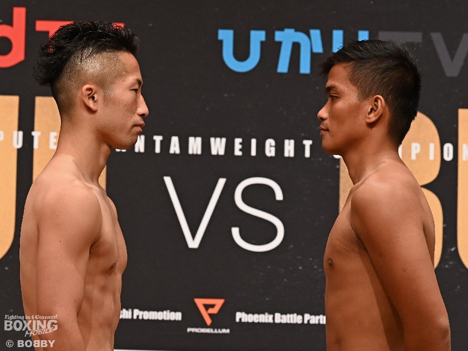 元IBFインターコンチネンタル・スーパーフライ級王者のボルネアは、1回目の計量を700gオーバーの56.2gで秤を降りたが、2時間後に行われた再計量でも100gしか落ちず、56.1sだった。両陣営話し合いの結果、ボルネアには当日計量が行われ、契約体重2.5s増(58.0s)以下で試合が成立する。