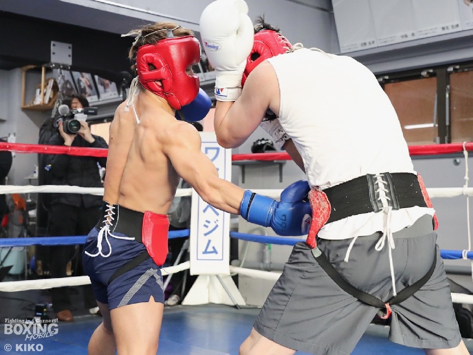 この日のスパーリングは、予定通り同門で、バンタム級A級ボクサーの吉田京太郎(25)を相手に2ラウンドを公開し、撮影をストップしてからも3ラウンド続けた。