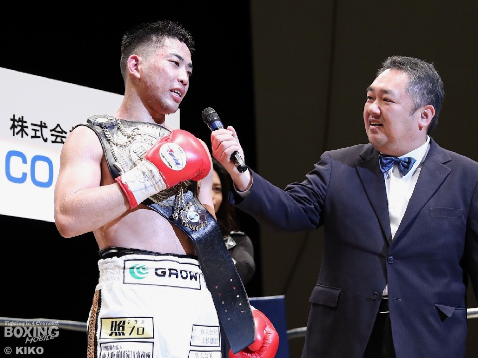 試合後、「6ラウンドからは、倒すのを諦めて戦った」と作戦を変更して、初防衛に成功した国本は、「知らない選手と韓国でもスパーリングをしてきたことが自信につながった」と、心が折れそうになった一進一退の攻防を振り返った。