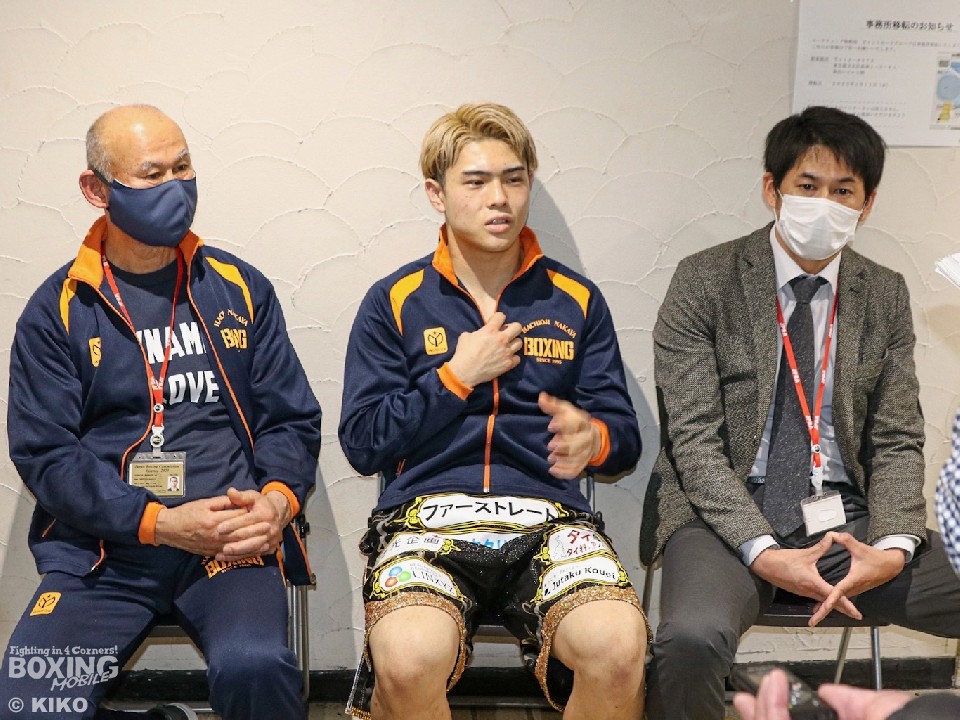 「落ち着いて練習通りに戦ったら、パンチにキレが出た。相手が前に出てきたが、正面からの打ち合いは自信がある。半年前にスパーリングをした時に、ボディが弱点だと思った。しかし、こんなに早く倒せるとは思わなかった」と試合運び同様、落ち着いた口調で振り返った。